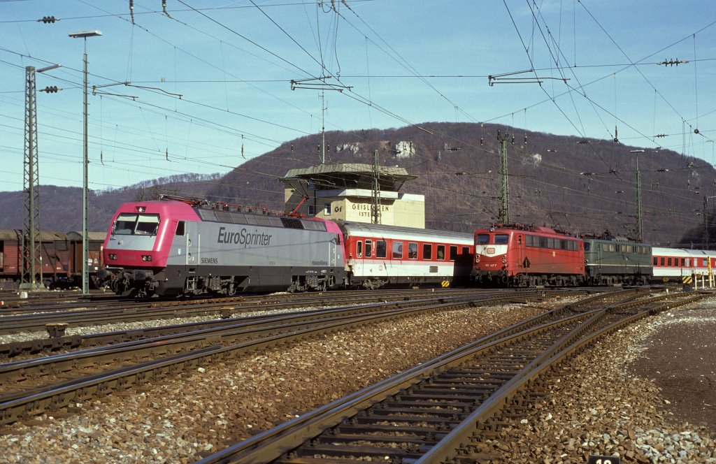01.04.2011, Der Bahnhof Reichenbach/Vogtl. mit BR 143 und BR 112. Eine Aufnahme die auch schon 25 Jahre alt sein könnte.