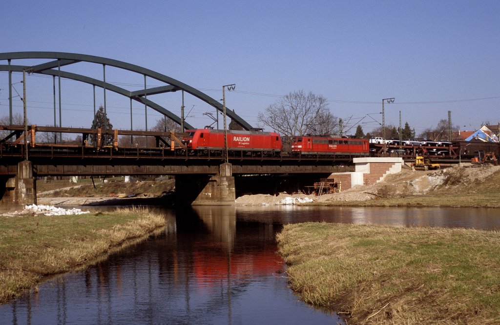 Verkehrsgrün, dass ist die neue Farbvariante der DB. Die erste Lok im neuen verkehrsgrün ist 111 028, die hier bei Aßling mit einem RE nach Salzburg zu sehen ist. In den nächsten Monaten sollen alle Fahrzeuge der DB verkehrsgrün lackiert werden. Das neue grüne Farbschema soll auf die Umweltfreundlichkeit der Bahn gegenüber dem Auto hinweisen. Die Bahn möchte durch das Umlackieren erreichen, dass mehr Menschen aus Umweltgründen (CO2 sparen) die Bahn nutzen. Es steht allerdings noch nicht fest, ob auch die Dieselloks umlackiert werden sollen, vor allem bei der Baureihe 232 ist man sich auf Grund des hohen CO2 Ausstoßes noch nicht ganz einig.