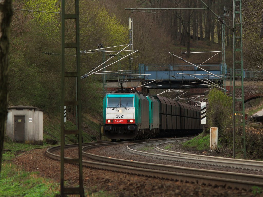Mit einem Kohlenzug am Haken kommen die Cobras 186 213 (2821) und 186 196 (2804) aus dem Gemmenicher Tunnel und rollen nun nach Aachen West.
