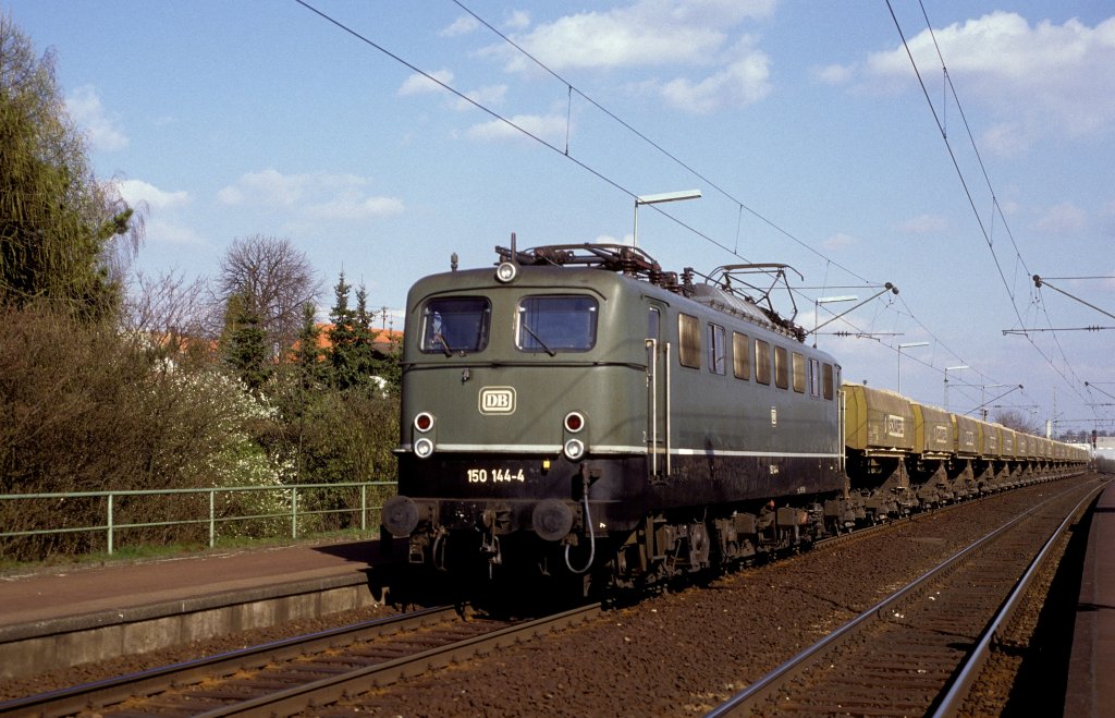Die 1144 258 am 16.04.2011 mit einem Kesselwagenzug unterwegs bei Großkarolinenfeld (BÜ Vogl).