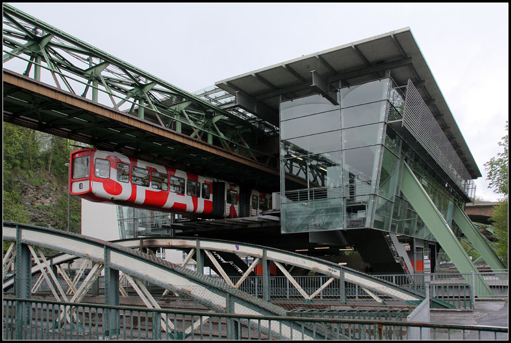 Die 2002 neu erbaute Station "Zoo / Stadion" ist in Richtung Westen die letzte über der Wupper. Architekten: Japert + Steffens (Köln).