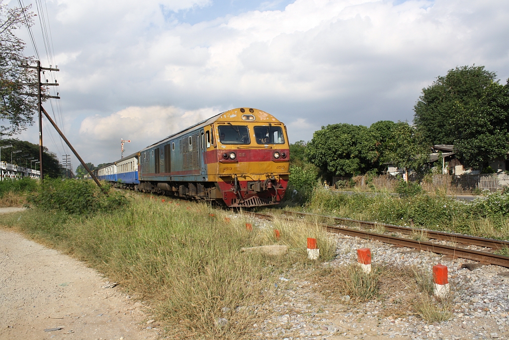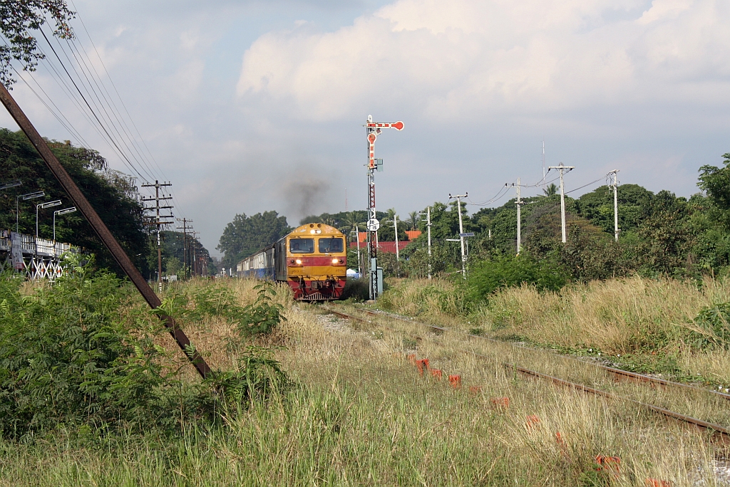 HID 4513 (Co'Co', de, Hitachi, Bauj. 1993) am 11.Jänner 2011 mit dem EXP 52 nach Bangkok beim Einfahrsignal des Bf. Chiang Mai.