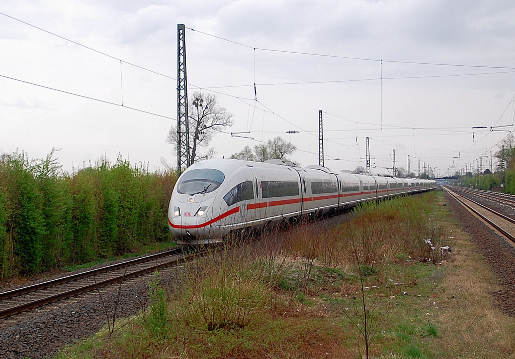 Am Weinberg - Bald ist Stuttgart erreicht: ein ICE 1 unterhalb der Weinberge zwischen Esslingen und Mettingen im Neckartal. 18.03.2008 (M)