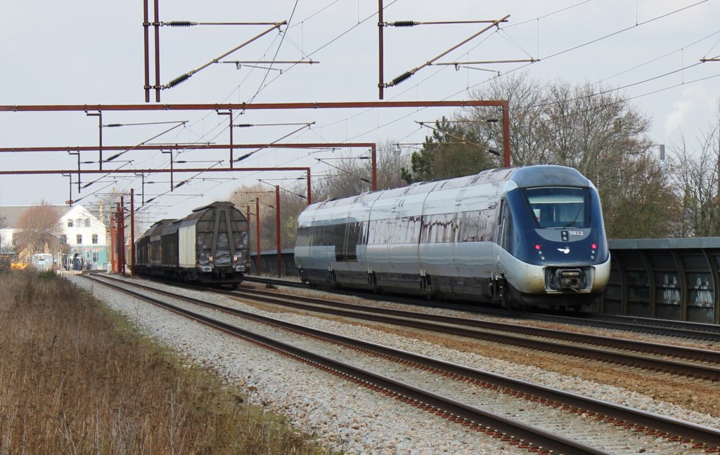 2 x IC-3 überholen einen Güterzug, Ejby, Fyn, 04.04 2011