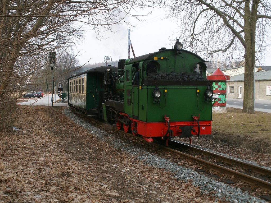 HSB 99 7243 fährt mit Zug 8935 von Wernigerode auf den Brocken; Schierke; 3.2.2011