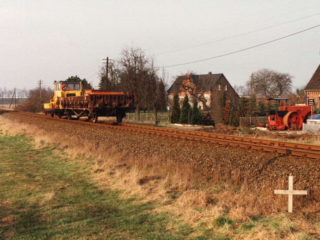 Eine Bauzug zwischen Bocholt und Wesel bei Feldmark am 3-3-1993. Bild und scan: Date Jan de Vries.