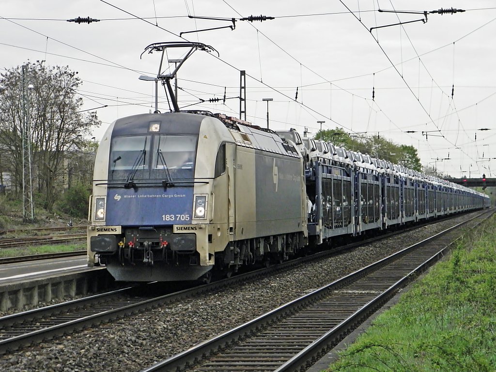 ÖBB 1116 014 mit dem Wenzel Logistik Ganzzug in Beuel am 7.4.2011