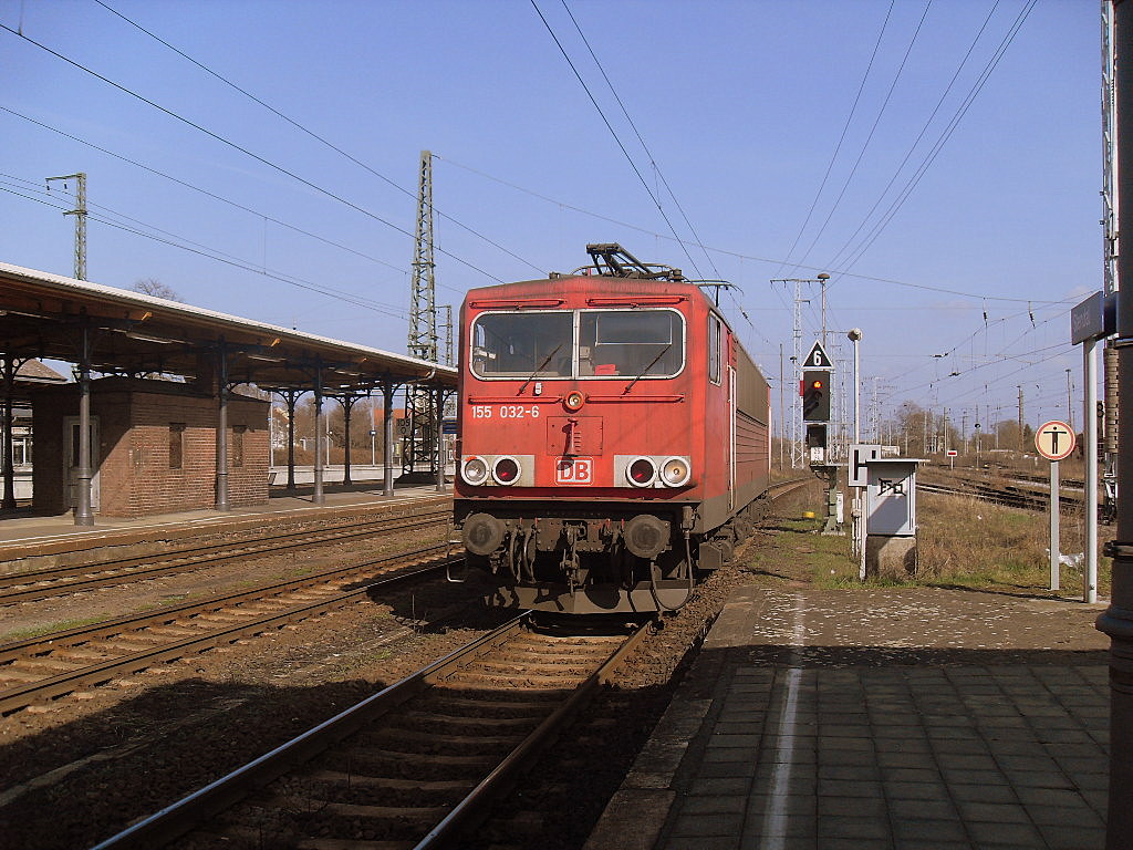 155 032 rangierte am 02.04.2011 in Stendal.