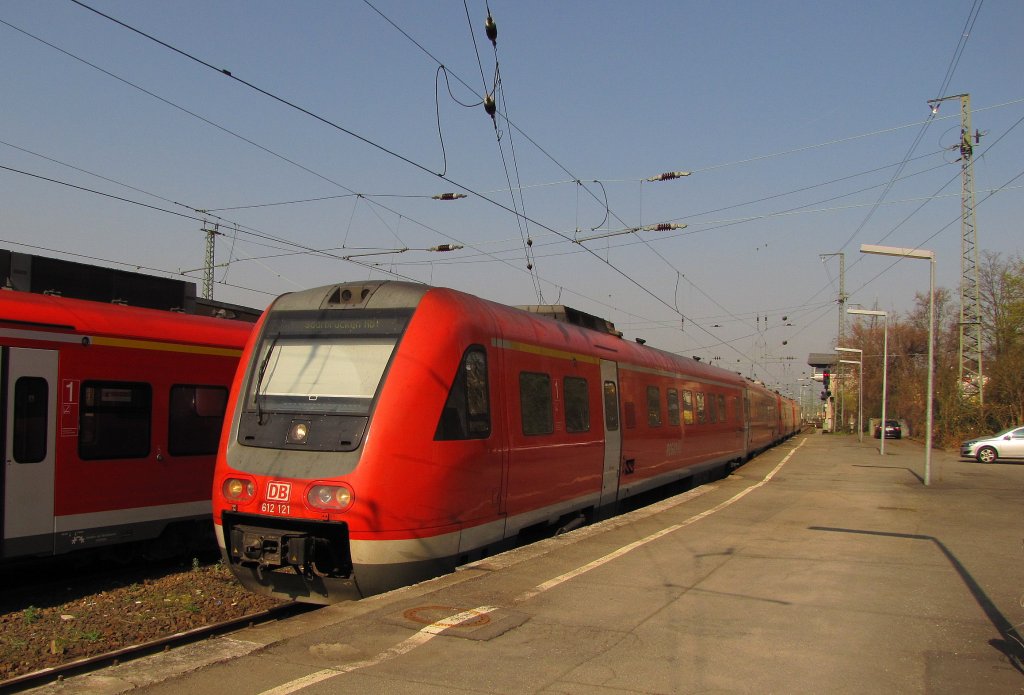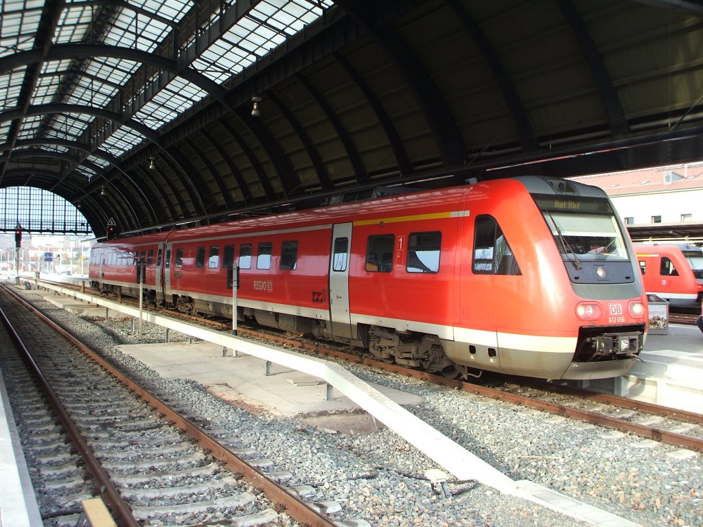 612056 steht in Gera Hbf bereit als RE nach Hof Hbf bzw. weiter bis Regensburg Hbf. Aufgenommen am 07.04.2011