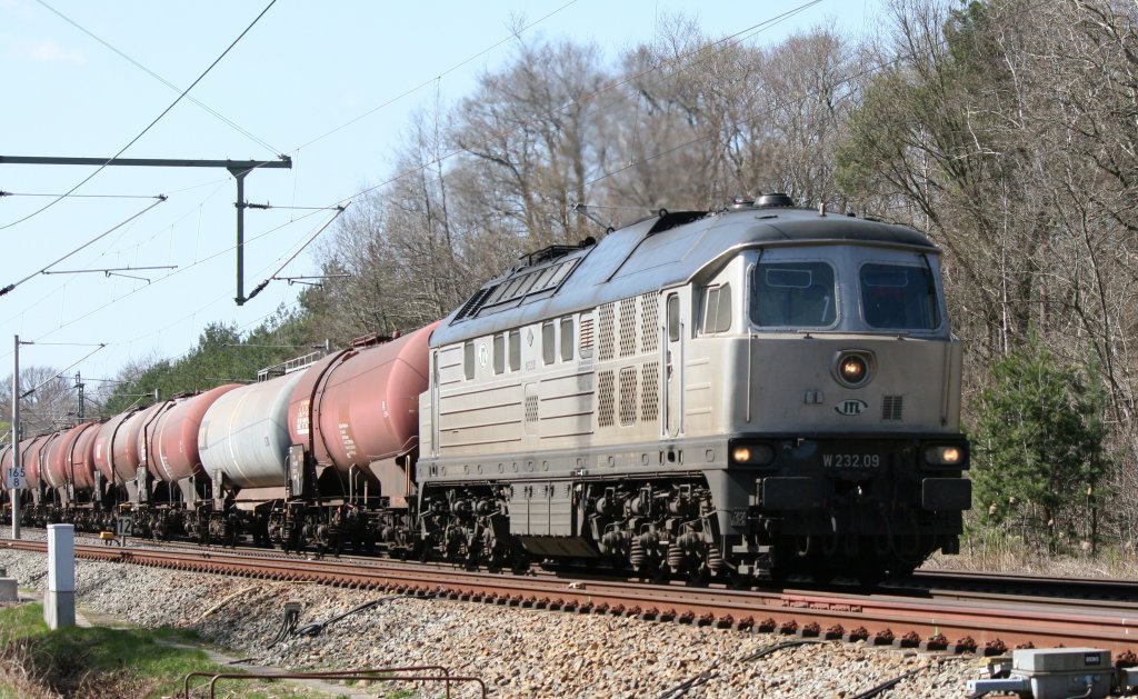 232 238 am 04.03.2011 bei Sulzbach-Rosenberg. Die Lok kam auf dem Gegenglais um einen kurz vor Neukirchen b. Sulzbach-Rosenberg liegengebliebenen Güterzug abzuschleppen.