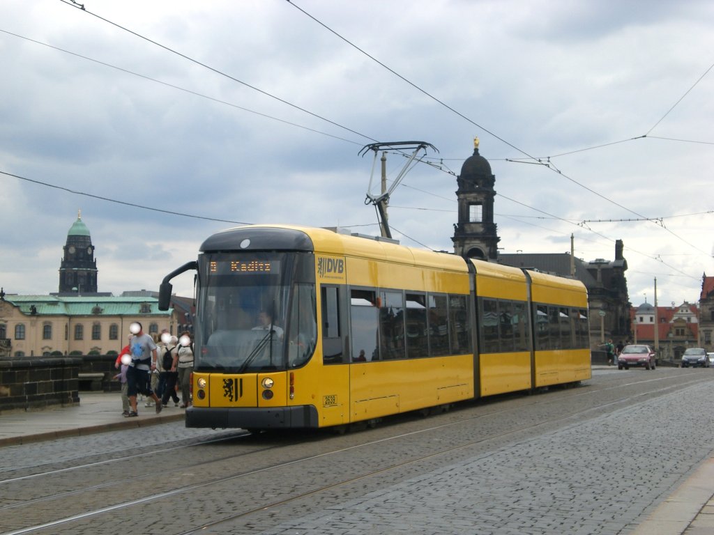 Dresden: Straßenbahnlinie 3 nach Coschütz an der Haltestelle Innere Neustadt Neustädter Markt.(25.7.2011)