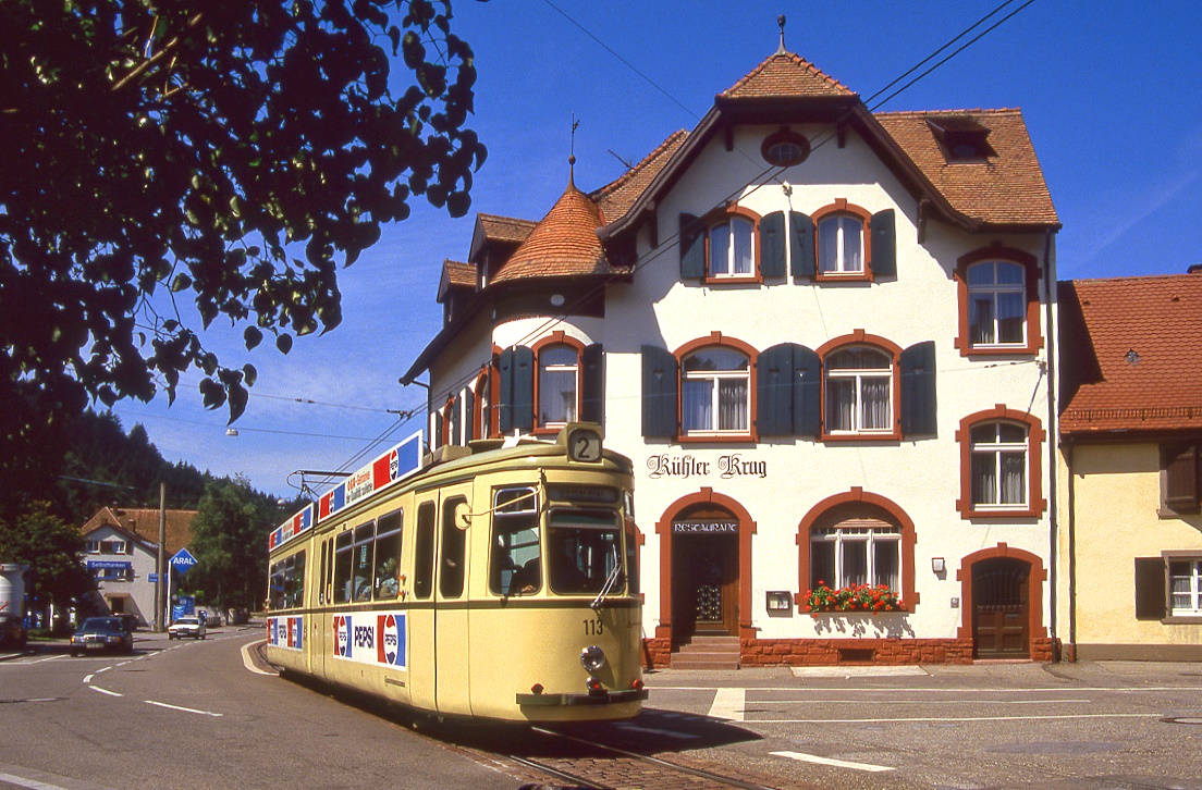 Freiburg Tw 113 erreicht Günterstal, 15.08.1987.