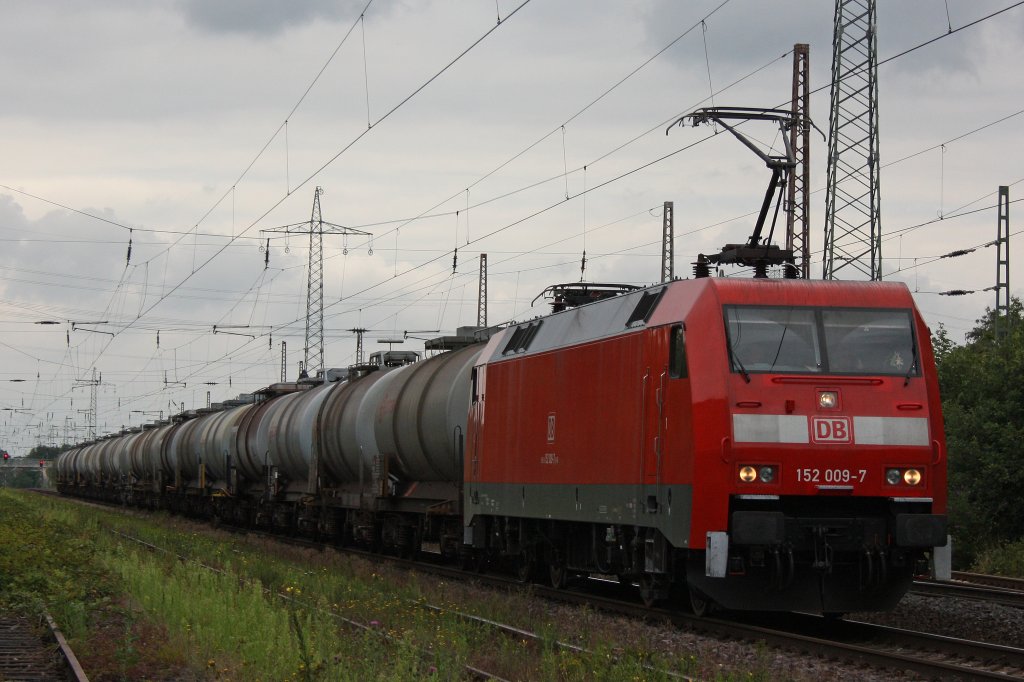 Die frisch Hauptuntersuchte 152 009 fährt am 23.7.11 mit einem Kesselwagenzug durch Ratingen-Lintorf.