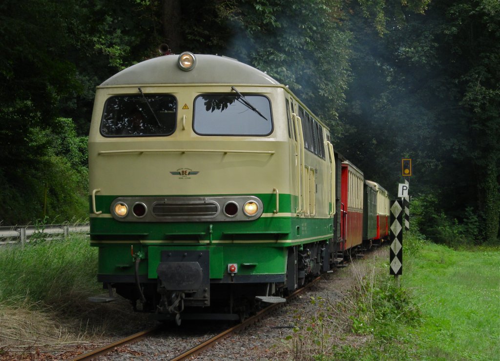 Die Henschel D5, aka "Schmalspur V160", bespann heute den Personenzug der Brohltaleisenbahn. Hier bei Bad Tönnis. 11.8.2011.