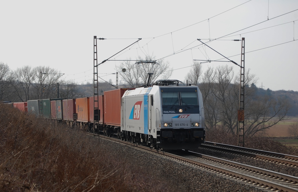 EVB 185 676-4 mit einem Containerzug am 12.03.2011 bei Salzderhelden