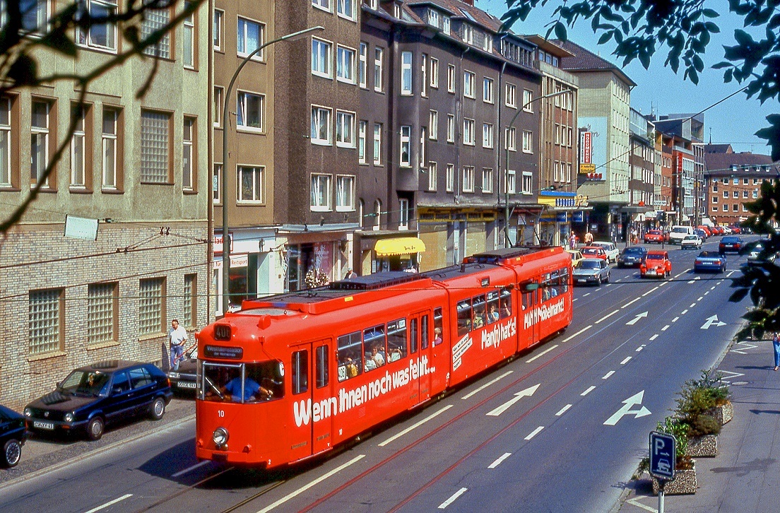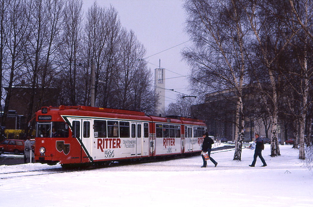 Guten Morgen, Karlsruhe!! Tw 120 am Marktplatz in der Kaiserstraße, 04.09.1987.