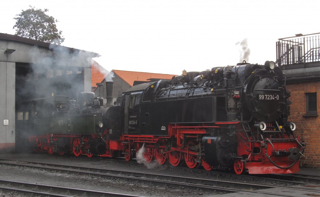 Zwei historische Mallet-Loks, gesehen im Bahnhof Wernigerode am 02.07.2010.