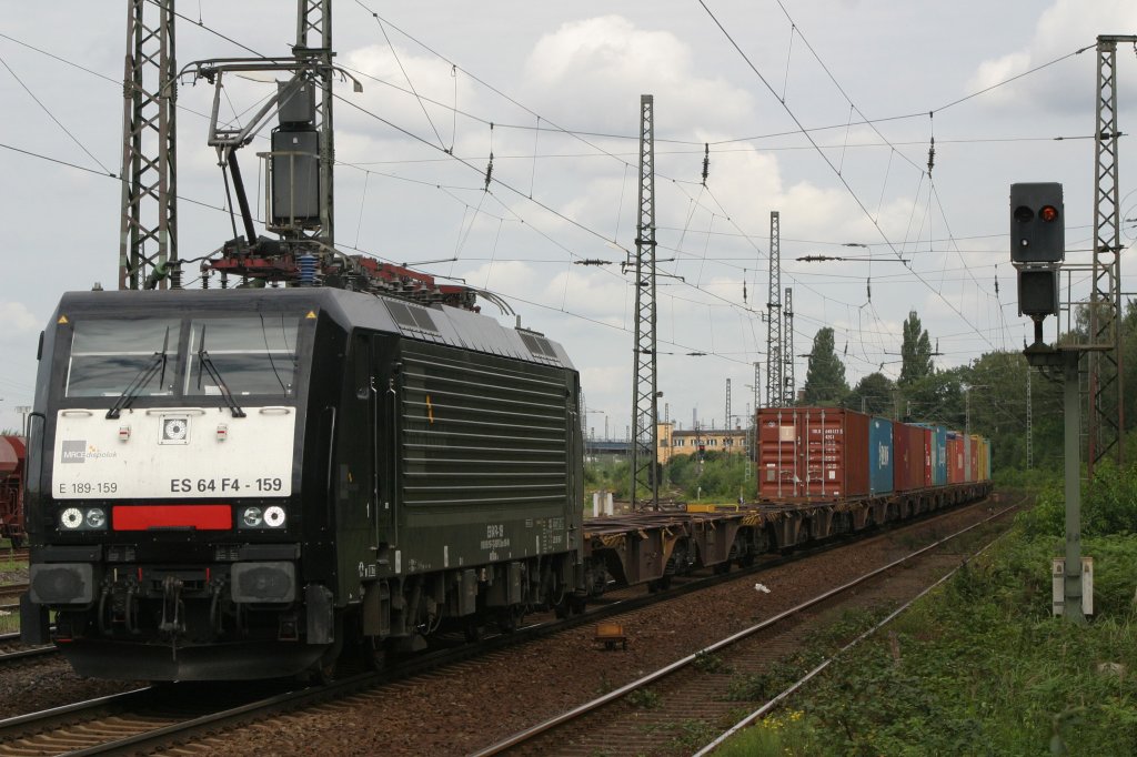 MRCE ES 64 F4-159 am 10.9.11 mit Containerzug in Duisburg-Bissingheim