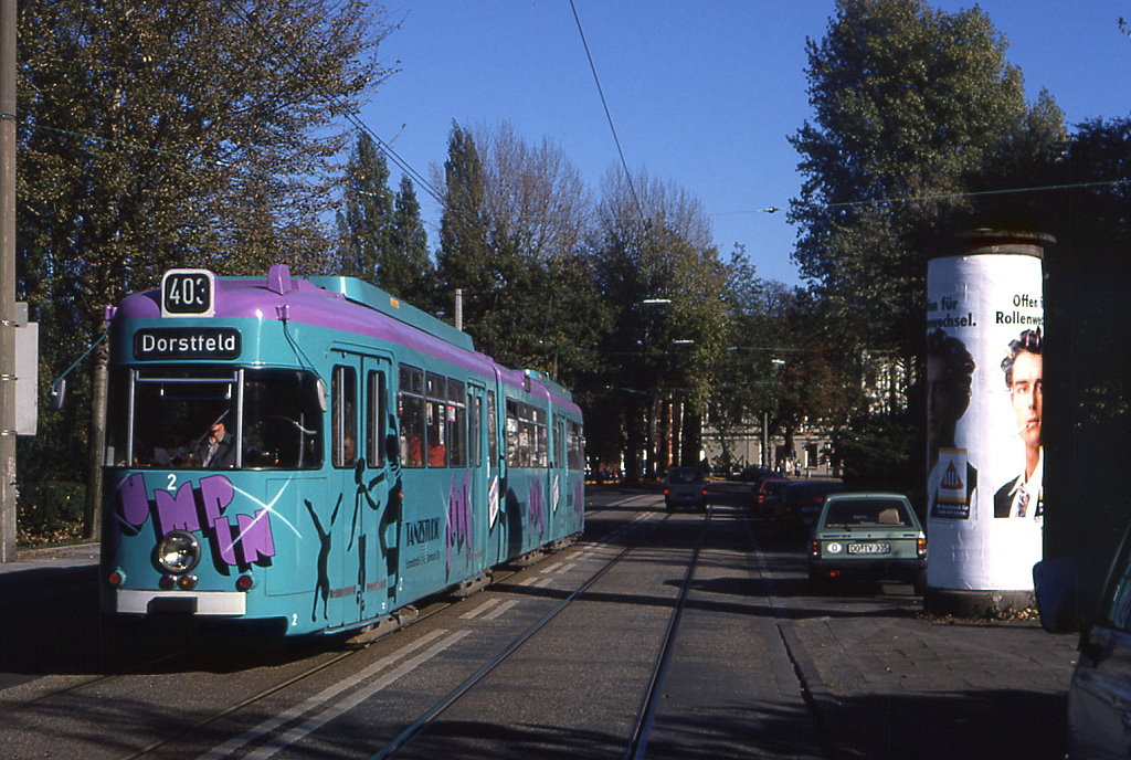 Dortmund Tw 2 verlässt die Innenstadt via Kampstraße in Richtung Westentor, 18.05.1992.