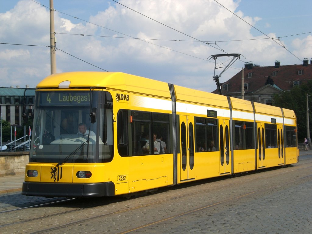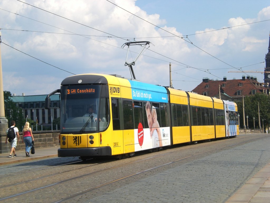 Dresden: Straßenbahnlinie 3 nach Coschütz an der Haltestelle Innere Neustadt Neustädter Markt.(27.7.2011)