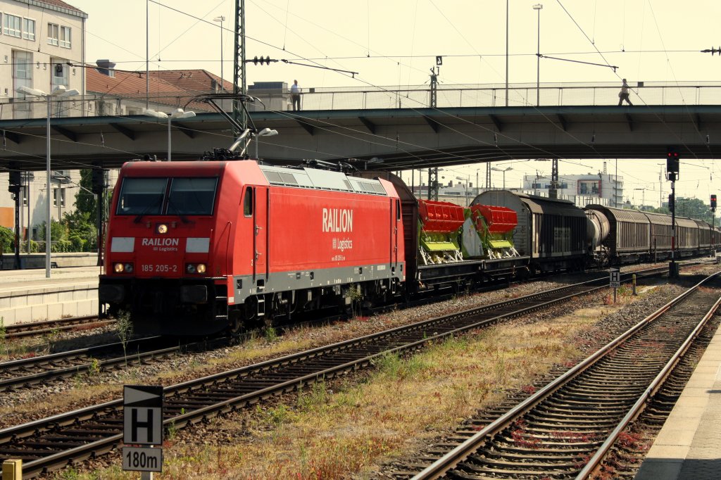 In Regensburg Hbf kam am 24.05.2011 die 185 205-5 mit ihrem gemischten GZ durch.