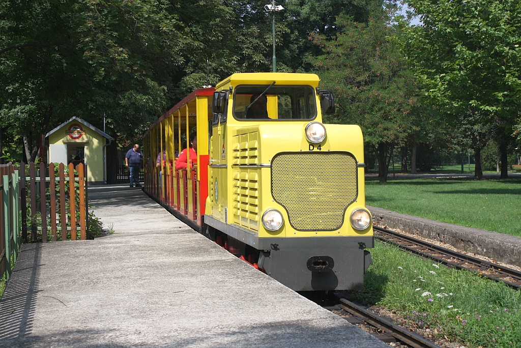 Lok D4 der wiener Liliputbahn bei der Ausfahrt aus der Hst. Station am 07.August 2011. (EXIF-Datum ist falsch, da bei Zeitumstellung falsches Datum eingestellt)