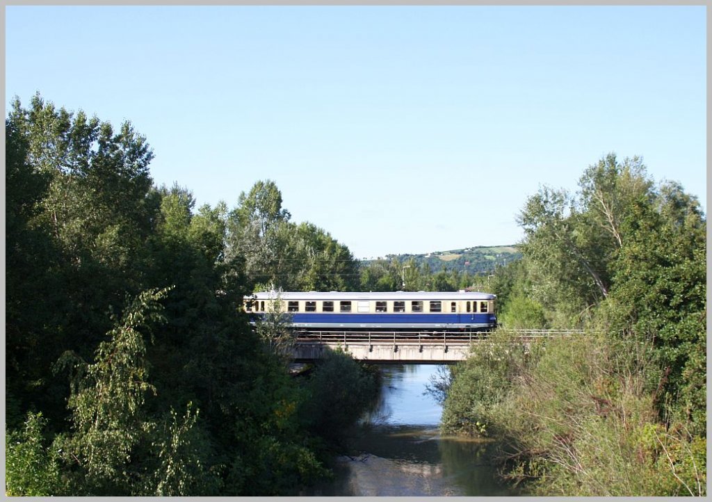 Der 5042 14 als REX 7390 bei der Überquerung des Marchfeldkanals in Wien/Strebersdorf. (Leider konnte ich den Triebwagen aufgrund seiner Schnelligkeit nicht optimal auf der Brücke einfangen...)   15.08.11