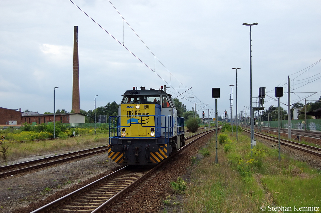 Die 1201  Sandra  der ERSR - ERS Railways B.V kam als Lz aus Richtung Stendal durch Rathenow gefahren und fuhr in Richtung Wustermark weiter. Eine Loknummer konnte ich weder auf der Lok noch im Internet finden, könnte wohl daran liegen das sie normal in Holland unterwegs ist. 16.08.2011
