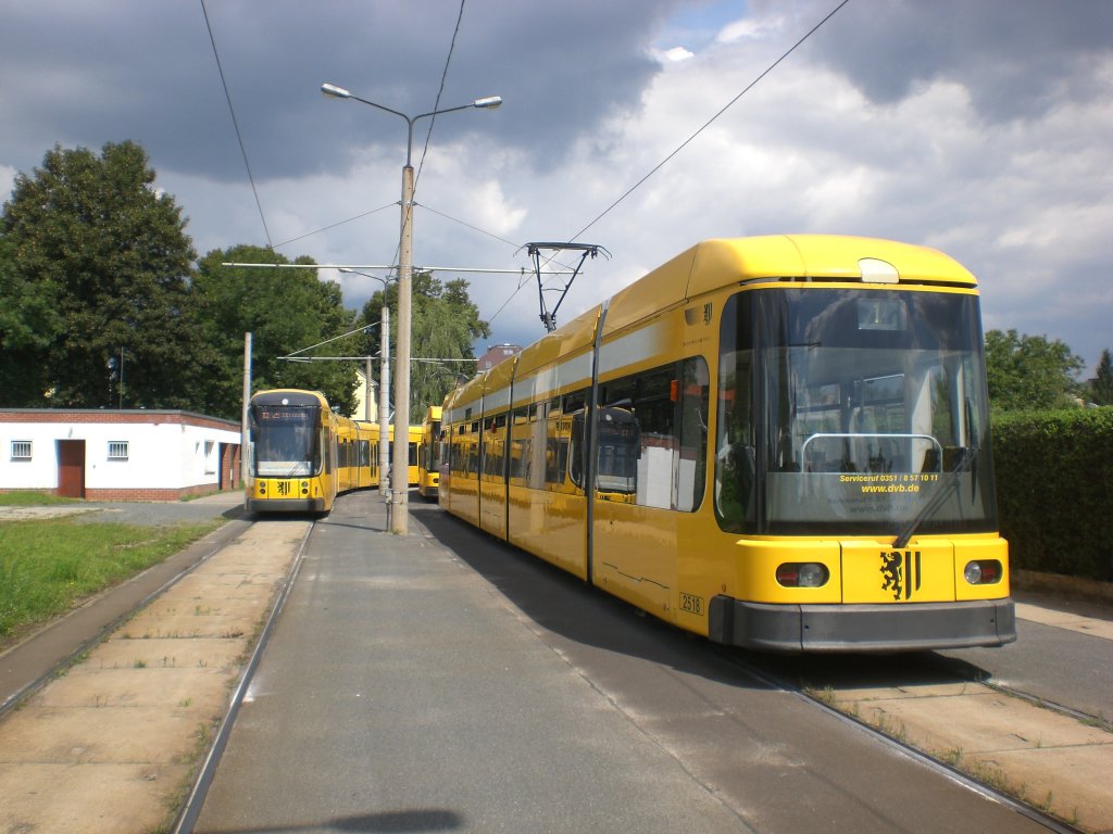Dresden: Straßenbahnlinie 1 nach Prohlis Gleisschleife an der Haltestelle Leutewitz.(28.7.2011)