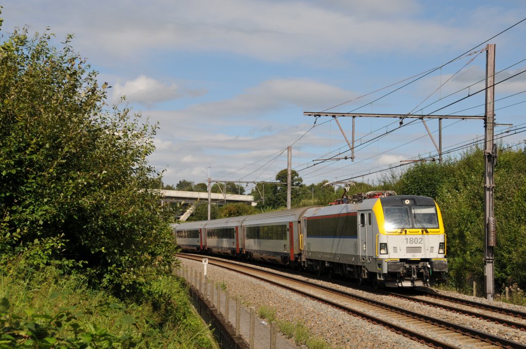 Der IC 134 ist der einzige InterCity der Verbindung Norddeich-Luxemburg der im normalem Betrieb über die Güterumgehungsstrecke Oetrange-Luxemburg/Süd nach Luxemburg kommt. Weil der IC 134 der Gegenzug des IC131 ist, der am frühen Morgen via Alzingen-Syren Luxemburg verlässt, muss er diesen Weg nehmen um die Wagenreihung nicht zu verändern. Hier sehen wir ihn am 18.August 2011 kurz hinter dem Syrener Tunnel.