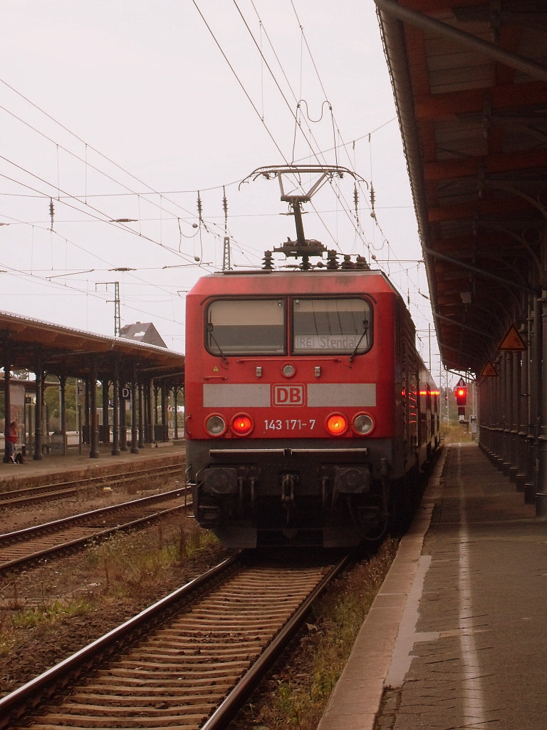 143 171 schob einen RE nach Halle (Saale)am 24.08.2011 in Stendal.