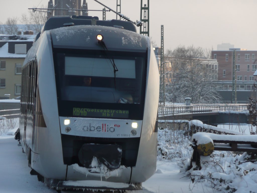 VT 11 002 "HERNE" der ABELLIO RAIL NRW ist als RB46 "Glückauf-Bahn" nach Gelsenkirchen unterwegs, hier bei der Einfahrt in Bochum West. (20.12.2010)