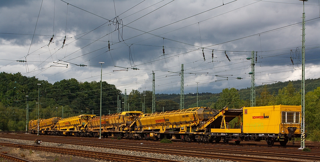 Abgestellter Zug von Materialförder- und Siloeinheiten MFS 100, der Schweerbau am 28.08.2011 in Betzdorf/Sieg.