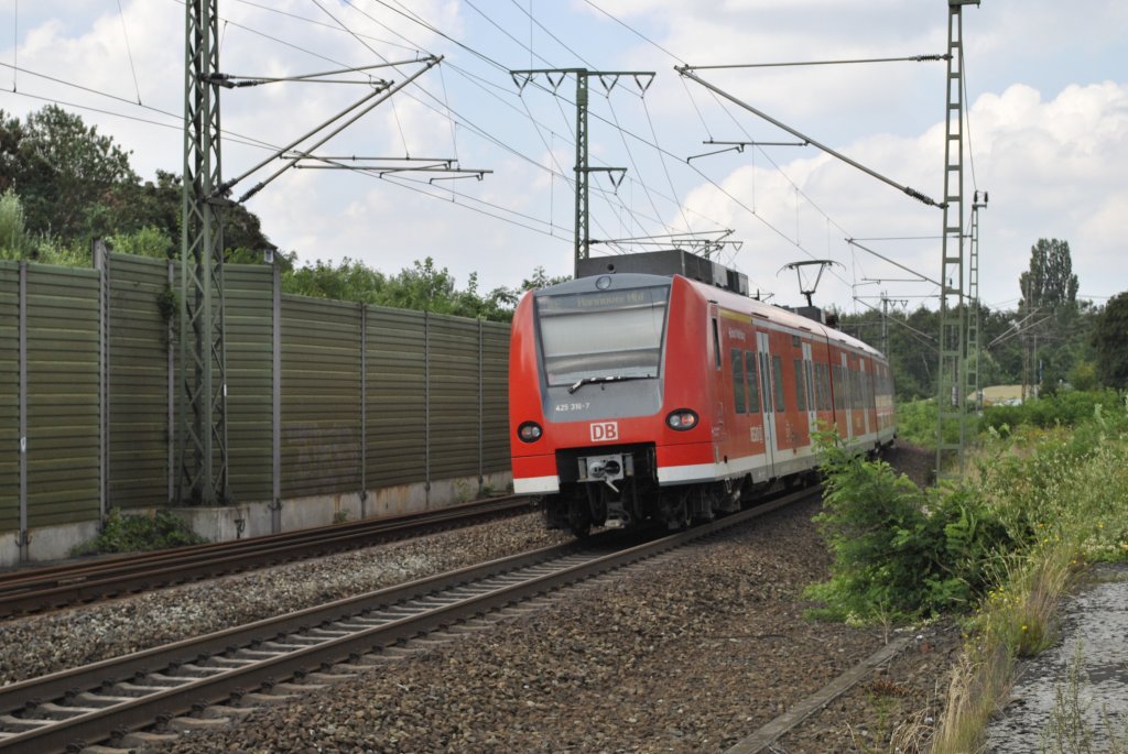 Triebwagen der BR 425beim verlassen mit von Lehrte gegen Hannover am 02.08.2011.