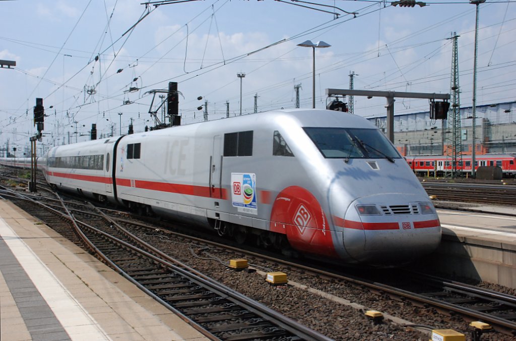 BR 401 067 mit Sonderbeklebung kurz vor der Ausfahrt aus dem Hbf Frankfurt/Main. Bild vom 4.08.2011