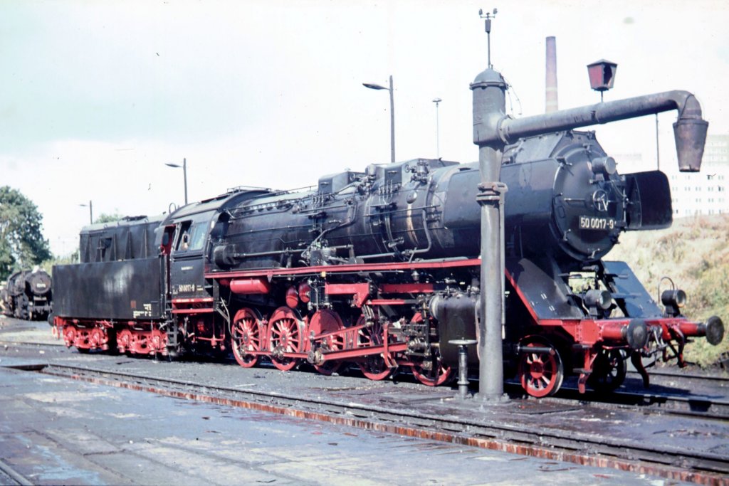 50 0017-9 Bw Berlin-Lichtenberg im August 1978. Damals war man enttäuscht, wenn die gleiche Lok an mehreren Tagen hintereinander kam ...