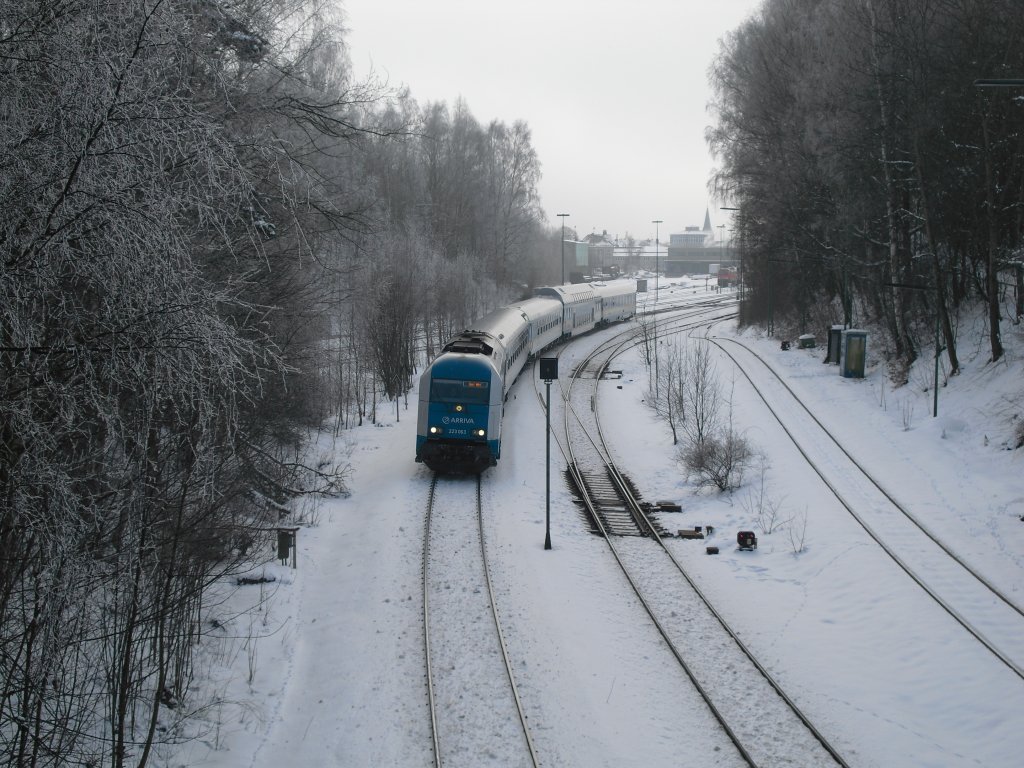 ER 20 007 kommt am 01.02.11 mit dem ALX aus Hof Hbf und hat Einfahrt in Marktredwitz. Dann geht es weiter nach München Hbf.