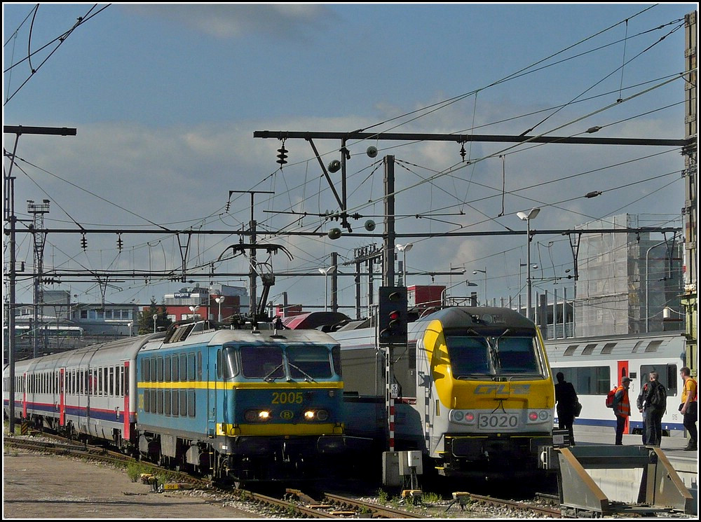 Die HLE 2005 zieht am 06.08.2010 den IC 91 "Vauban" in den Bahnhof von Luxemburg vorbei am Wendezug nach Kleinbettingen mit 3020, der am Bahnsteig auf die Abfahrt wartet. (Jeanny)