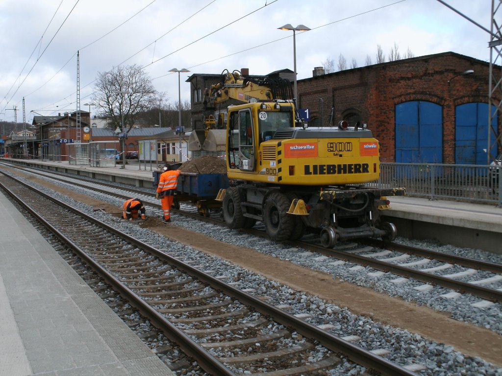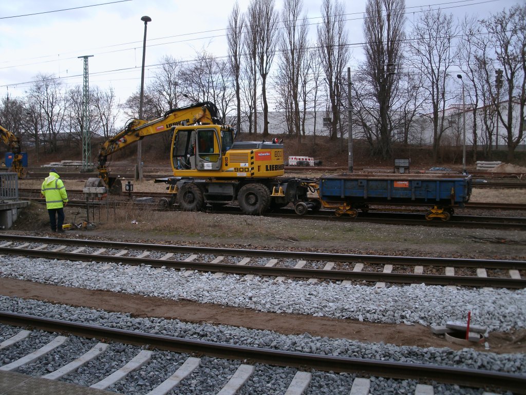Zweiwegebagger im Einsatz am 09.Februar 2011 in Bergen/Rügen.