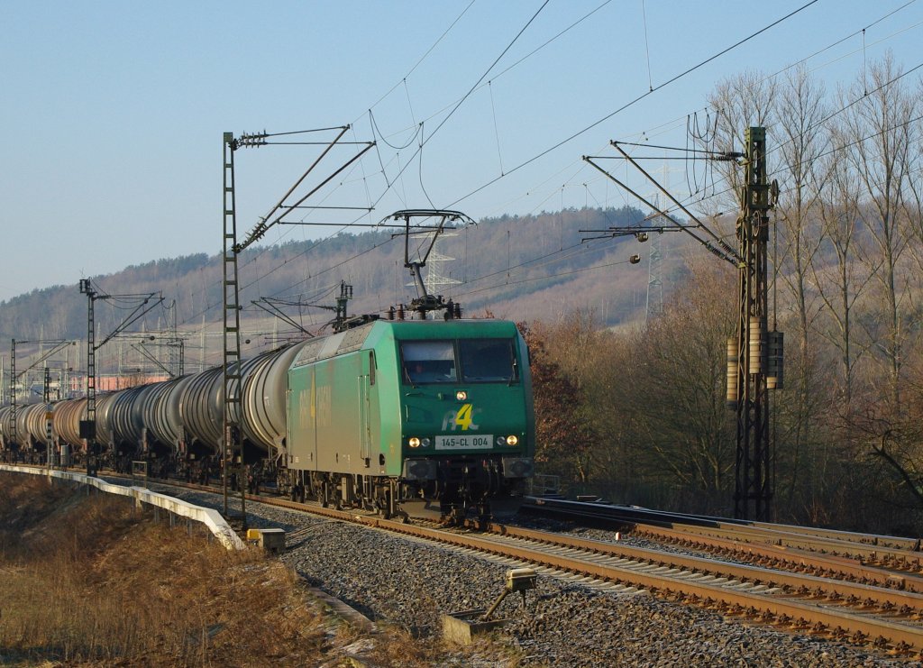 185 570-9 mit Containerzug in Fahrtrichtung Süden in Mecklar. Aufgenommen am 29.01.2011.