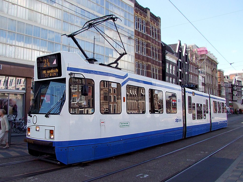 825 als L24 fährt lt. Aufkleber "Deze tram rijdt op groene stroom" wohl mit grünen Strom; Muntplein;100903