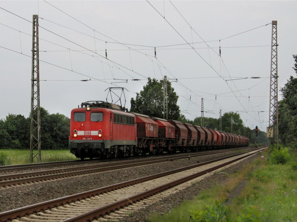 Die 140 791 am 10.08.2010 mit einem Tanos Ganz Zug unterwegs bei Dörverden.