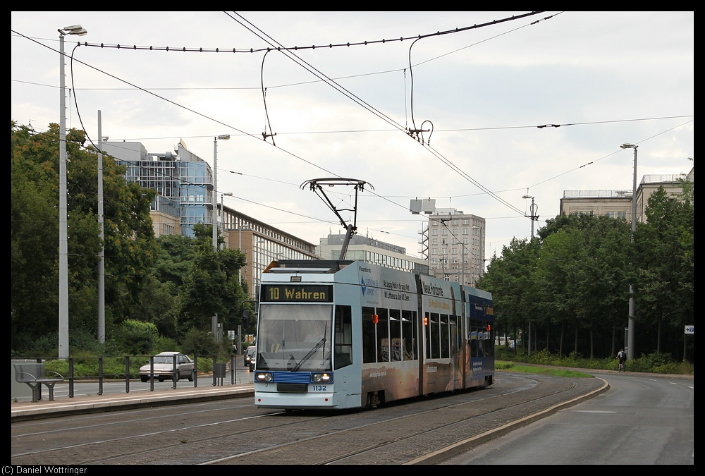 Triebwagen 1132 am 23. August 2010 nahe des Leipziger Hauptbahnhofes.