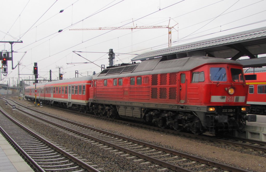 DB 232 209-7 mit dem RE 3626 aus Altenburg, in Erfurt Hbf; 24.01.2011