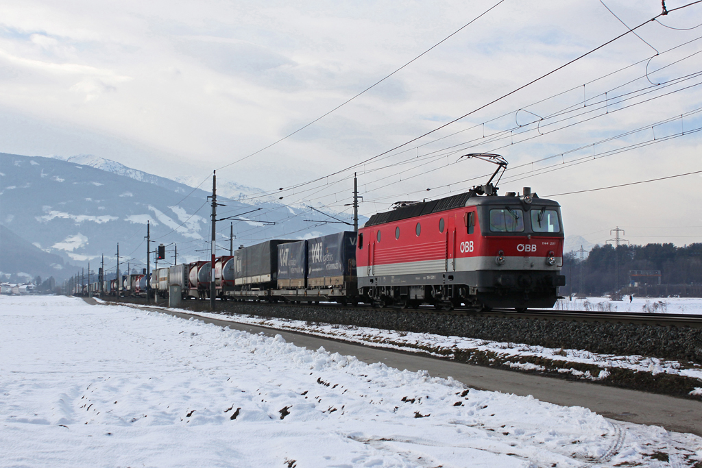 1144 201 mit einem KLV Zug am 29.01.2011 bei Schwaz.