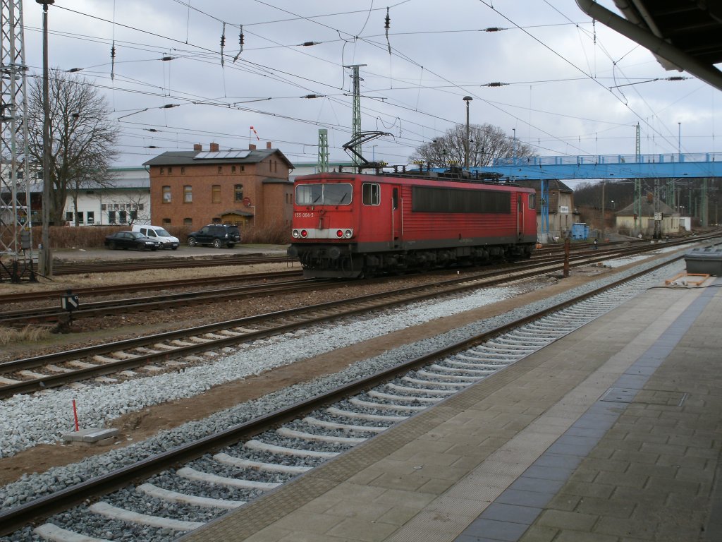 Auf Lz-Fahrt durch Bergen/Rügen nach Mukran war am 09.Februar 2011:155 004.
