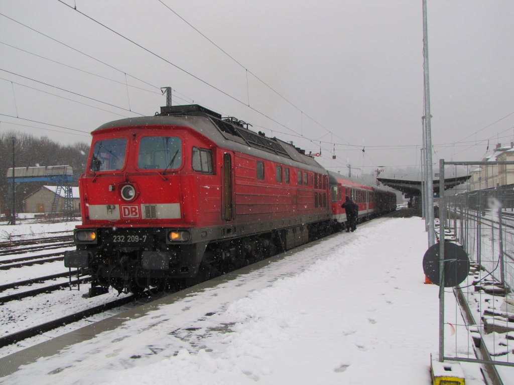 DB 232 209-7 mit dem RE 3625 aus Erfurt Hbf, am 24.01.2011 in Altenburg.