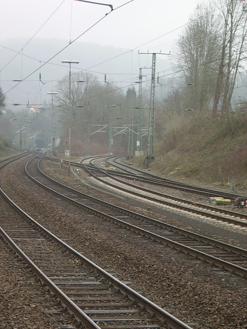Die Bahnhofseinfahrt in Neckargemünd von Kleingemünd aus bzw. Neckargemünd Altstadt am 18.02.11