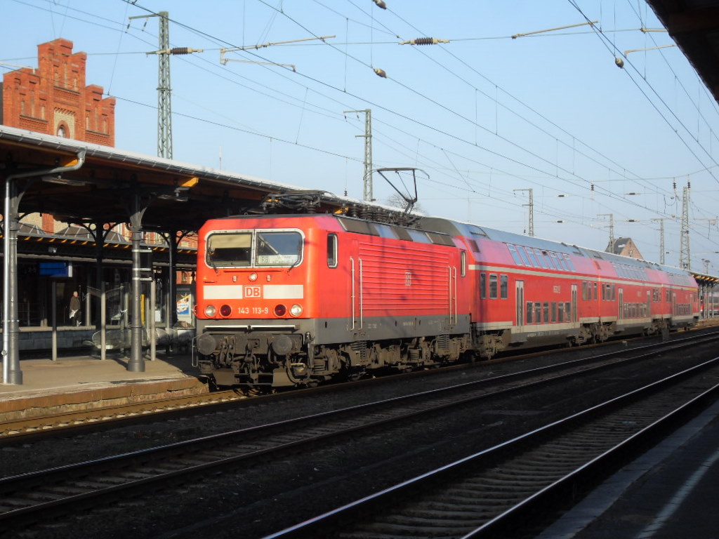 143 113 mit einem Regionalexpress am 22.02.2011 in Stendal.