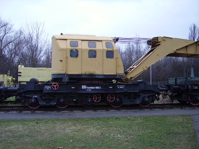 Ein alter Gleisbaukran in Technik Museum Speyer am 19.02.11 er war in GLB Hanau stationiert und bei der DB in Frankfurt zugelassen.
